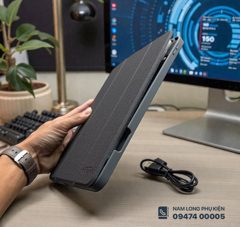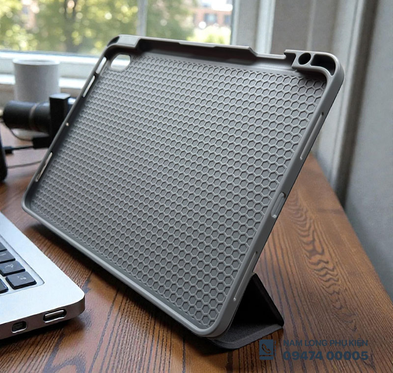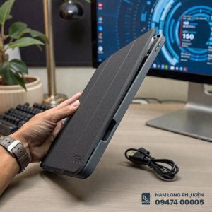 Thiết kế nắp gập thông minh, cho phép dựng iPad ở nhiều góc độ khác nhau, rất tiện khi xem phim, học online, họp video hoặc gõ phím. Bao da hỗ trợ tự động bật/tắt màn hình khi mở – đóng nắp, giúp tiết kiệm pin và thao tác nhanh hơn.