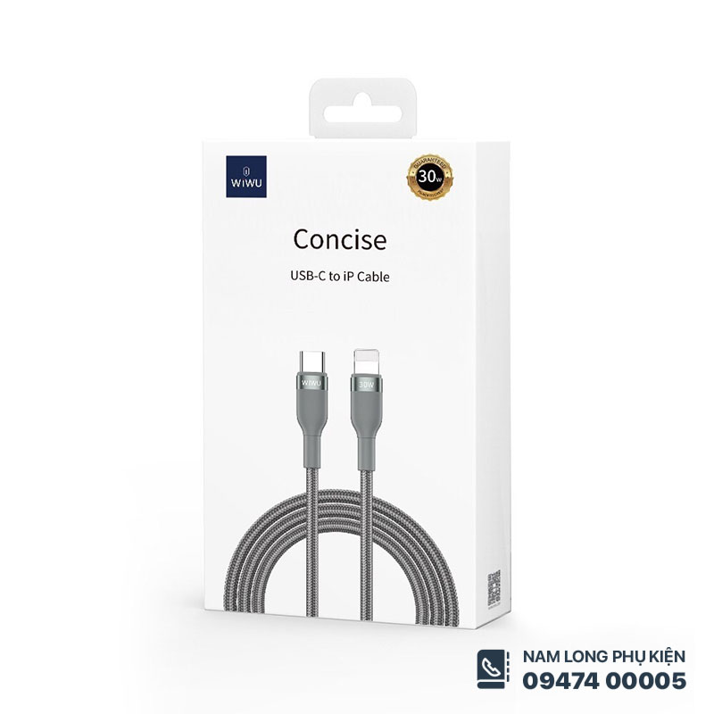Cáp sạc iPhone WiWU Concise C017 30W 2m – Sạc nhanh, bền, dài tiện lợi
